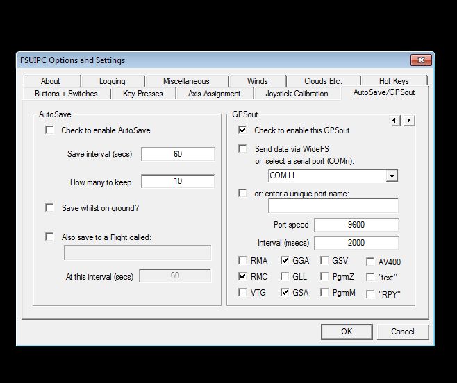 - In FSX Add-ON menu set FSUIPC as per the attachment - (Use GPSout setting in short)