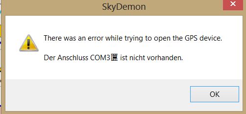 However, although Skydemon is now able to connect to the GPS and also shows that enough Sats are available, I receive the "Seeking GPS Satellites" error (s. attachment).